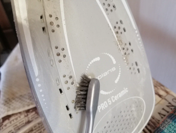 Сначала расскажу, как можно очистить подошву утюга. Нанесите на старую зубную щетку немного пасты для чистки полости рта и потрите ею утюг. Если загрязнения несерьезные, то вся грязь очиститься легко.