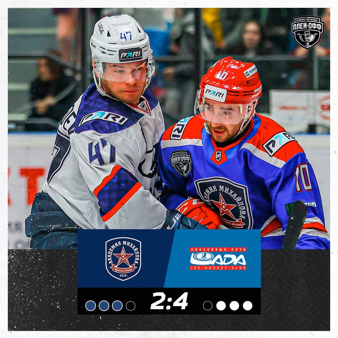 Калетник Владислав 03:51 Романов Иван 19:51 Во втором периоде команды не были многословны на шайбы всего лишь одна шайба была заброшена её забросил игрок Лады Червоненко Владислав 29:01 В третьем периоде Лада объективно удерживала счёт. Игроки АКМ очень сильно давили и даже в последней пятиминутке зажали Ладу у своих ворот,но получилось забросить всего две шайбы и Лада смогла удержать счёт 2:4.Получилась по настоящему валидольная концовка! Дублем отличился Кулагин Александр на 45:14 и 51:47 Серия переезжает в Тольятти где команды сыграют решающий седьмой матч.Надеемся на такую же яркую и валидольную игру!