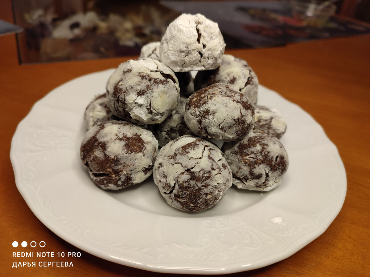 Знаменитое шоколадное печенье, но из овсяной муки. Настолько шоколадное, что шоколаднее только сам шоколад) Нежное внутри, не приторное, с ноткой апельсина. С красивыми трещинками на поверхности. Готовится просто и из обычных продуктов Для этого рецепта нужно просто точно делать именно то, что написано и так, как написано. И все точно получится. Технология простая, без подвохов Купите уже готовую овсяную муку - перемалывать ее самим для этого печенья не рекомендую. Не получится так мелко как промышленный помол, а в этом тесте важна однородность У меня в этот раз немного не хватило муки, пришлось перемалывать хлопья до нужного объема. На фото видны крапления, помол крупнее получился. Вот так быть не должно) Шоколад выбирайте горький и темный, 70% и больше какао. Молочный тут не подойдет, будет только сладость а не вкус Запаситесь сахарной пудрой - ее прилично понадобится для обваливания печенья Сложность рецепта 2 из 10 Время приготовления 3 часа. Из них Вашего времени 30 минут. Самое б