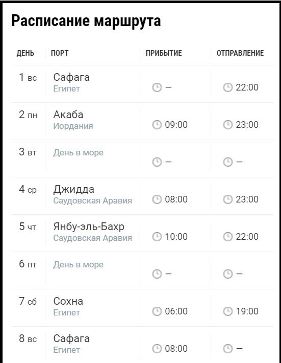 Если начинаем пусть в Сафаге - то расписание маршрута будет выглядеть так: