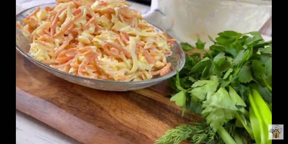 зачетный салат пять минут на готовку потратила вот если взять готовую морковь по-корейски то салат готовится моментально а вкусный какой получается можно конечно приготовить морковь по-корейски и самим я сегодня взяла готовую отправляю в глубокую миску морковочку жидкость я кстати предварительно слила лишняя жидкость нам здесь не нужно продукты мне сегодня понадобится все самые простейшие и состав вы найдёте в салат получается настолько вкусное что на столе а не задержится беру заранее отваренные вкрутую яйца и сразу же в миску натираем их на крупной терке плавленые сырки я их очень люблю поэтому буду использовать именно их если вы не любите можете использовать тот сыр который вы считаете нужным цирке я заранее отправила в морозилку они подмороженные слегка и теперь они очень-очень легко натираются натирая натираем их также как яйца на крупной терке друзья подписывайтесь на мой канал и жмите на колокольчик чтобы получать уведомления о новых выпусках на мо