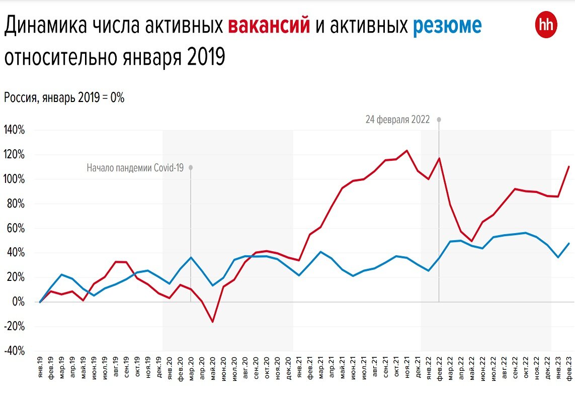По данным hh.ru число вакансий растет быстрее числа резюме. Другие источники также указывают, что спрос на работников высокий, растет уровень зарплат. Доходы граждане конвертируют в покупки, что хорошо для экономики в целом. При этом производительность труда пока увеличивается медленно.