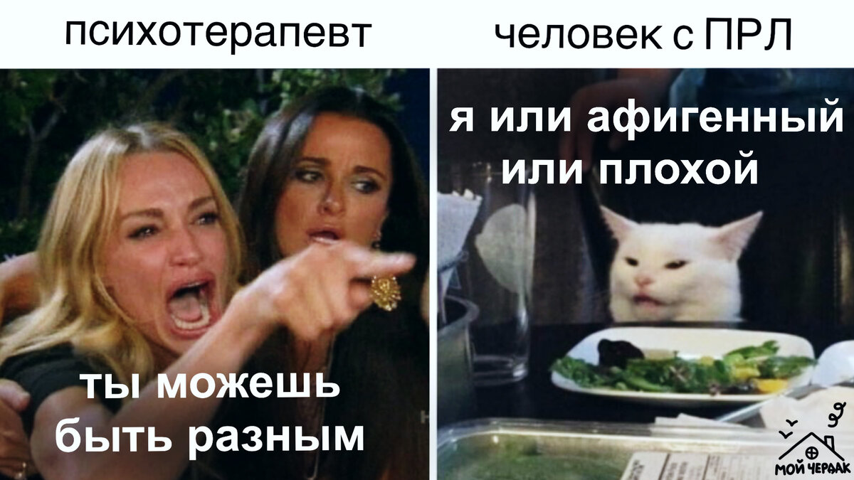 Оценивая происходящее, человек с ПРЛ все время находятся в одном из крайних положений и не может привести противоречивые установки к общему знаменателю.