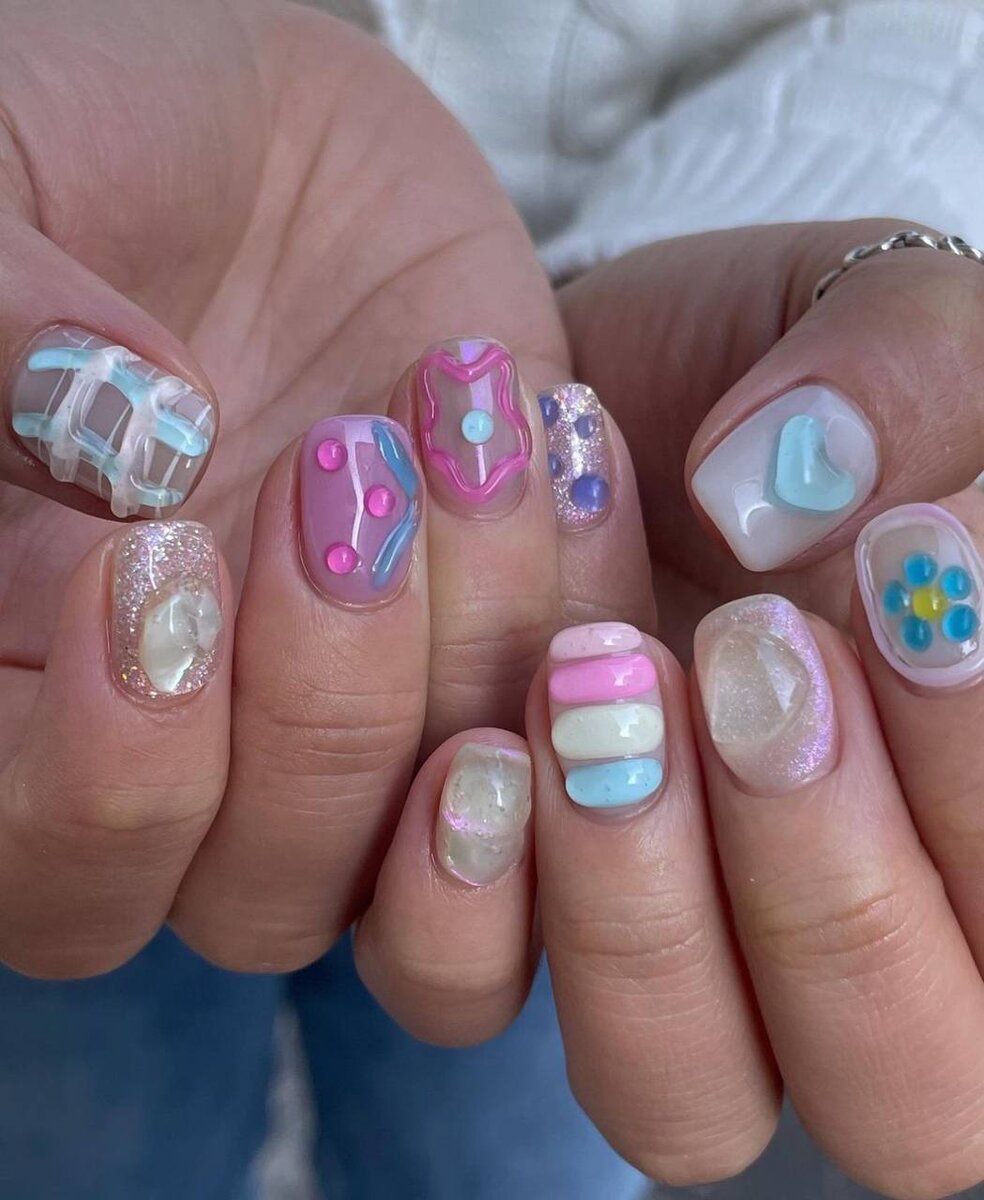Мы снова в эре «хотим корейский маникюр». Особенно выделяются работы Дженни из Сеула — при создании она вдохновляется керамической посудой, картинами и арт-объектами.