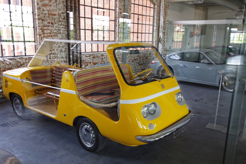 Вот это чудо определить я не смог. В 1950-х и 1960-х было модно всячески изгаляться над FIAT 600 Multipla, переделывая его в экскурсионные и пляжные микроавтобусы. Особенно на этой почве отметились Джованни Микелотти со своим Marinella и Ghia с линейкой пляжных машин на базе FIAT и Vespa, под названием Jolly. Но вот конкретно такую машину я никогда не видел и даже поиск в этих ваших Интернетах не дал никаких результатов. Если кто-то в курсе о том, что это такое — дайте знать. И да, в качестве подсказки — спереди у нее Фиатовский шильдик.