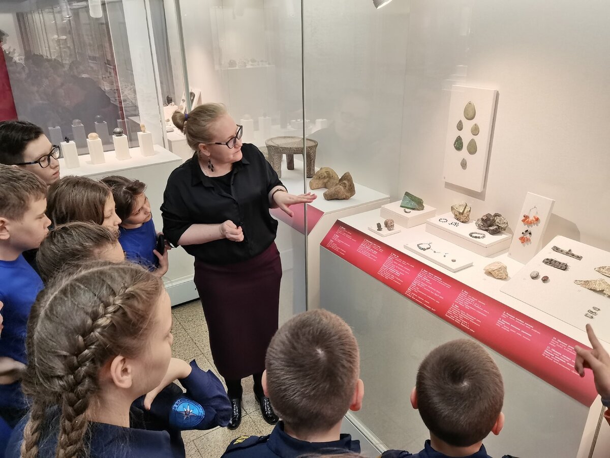 Одними из первых экскурсантов стали четвероклассники из школы № 150 г. Челябинска. Экскурсовод Анна Машарова рассказала ребятам о том, как минералы использовались в древности, а также о поделочных камнях, из которых уральские камнерезы создавали свои шедевры. В конце экскурсии на память о выставке дети с помощью акриловых красок нанесли на подготовленную гальку рисунок - ящерку, который будет напоминать им об уральских самоцветах. Наш фотоальбом: