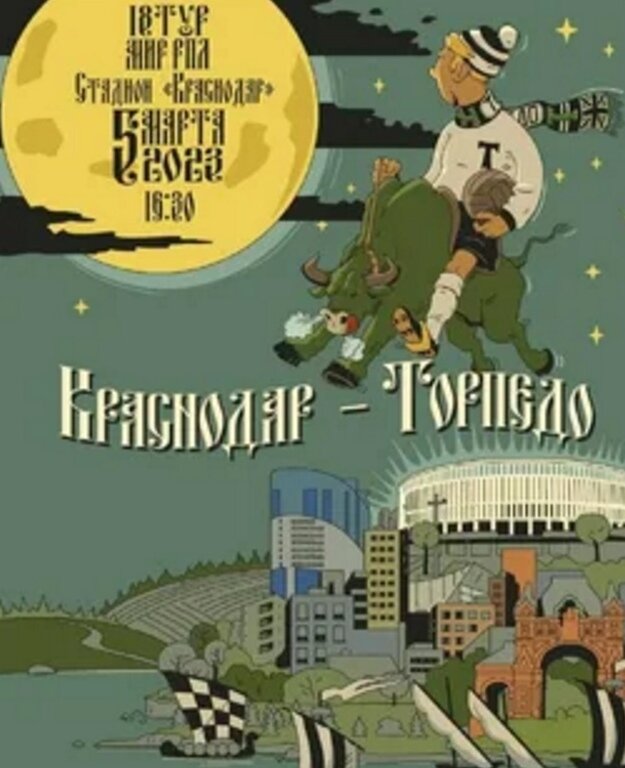 Вчера 5 марта состоялся ещё один матч 18 тура РПЛ. ФК Краснодар принимал московское Торпедо. Перед зимней паузой оба клуба сыграли плохо. В последних трёх матчах ФК Краснодар заработал только 1 очко, а ФК Торпедо потерпела 5 подряд поражений. Только ФК Краснодар неплохо сыграл в начале чемпионата и только ближе к зимней паузе сдал, а ФК Торпедо на протяжении всех 17 туров набрал только 6 очков. Торпедо, как и другие аутсайдеры провели мощную для зимы кампанию в межсезонье и приобрели 5 новых футболистов, а краснодарцы приобрели только двух иностранных футболистов - бразильца Кади Боржеса из азербайджанского Карабаха и Мозеса Давида Кобнана из словацкого "Железничара". У удивлению Торпедо позитивно и оптимистично смотрело на результат игры и СММ-служба команды сделала вот такую афишу и разместила в социальных сетях клуба. Но вернёмся к прошедшей игре. Чего я не ожидал, как и другие болельщики, так это то, что Торпедо играл на равных с Краснодаром на протяжении всего матча и даже пе