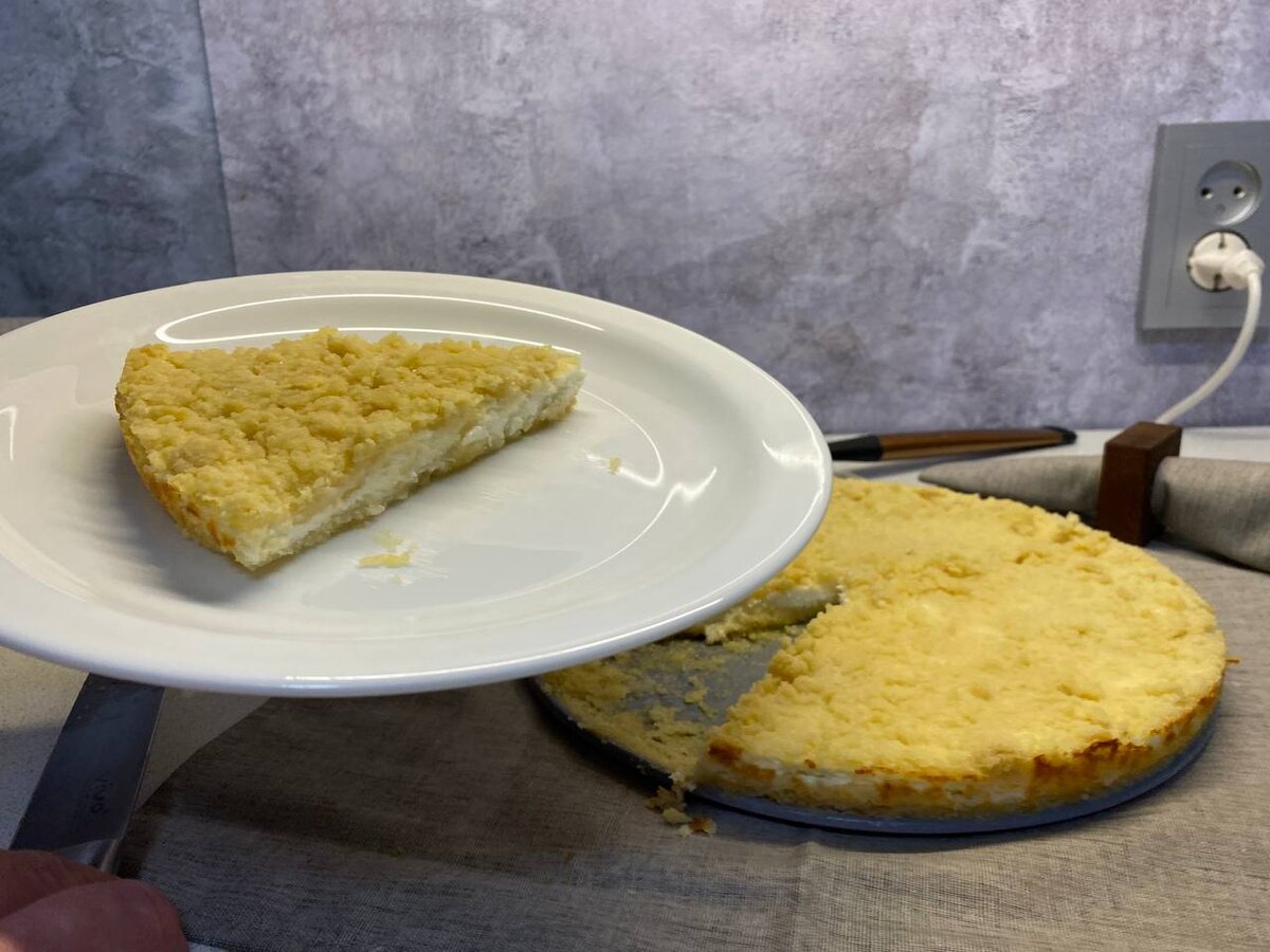 Быстрый и вкусный пирог для тех, кому хочется чего-то к чаю 😻 Время приготовления 30 минут 👑 Для королевской ватрушки нам понадобится: ☀️Тесто: 🍓250 гр пшеничной муки 🍓100 гр сахара 🍓180 гр сливочного масла 🍓5 гр разрыхлителя ☀️ Начинка: 🍓500 гр мягкого творога 🍓100 гр сахара ☀️ И капелька растительного масла для того, чтобы смазать форму ☀️ Посуда: 🍓форма для выпечки 🍓2 большие глубокие тарелки 🍓тёрка 🍓 столовая ложка 🍓 вилка 🍓 кулинарная кисточка 1) Берём большую тарелку и натираем в неё сливочное масло. Масло должно быть охлажденным, но не замороженным ❗️ 2) В натёртое масло всыпаем муку 3) Туда же всыпаем 100 гр. сахара 4) В смесь для теста добавляем разрыхлитель 5) Надавливающими движениями столовой ложкой перемешиваем наше тесто до пескообразного состояния. Не нужно бояться небольших комочков 😉 6) Переходим к начинке. Во вторую тарелку выкладываем творог 7) Всыпаем 100 гр. сахара в творог. По вкусу можно добавить ванилин или ванильный сахар. 8) Перемешиваем на
