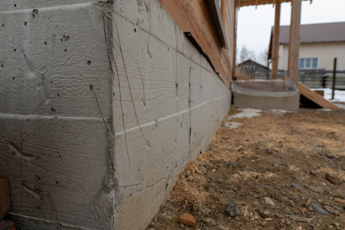 Здесь смонтирован ленточный фундамент. Выбор фундамента - это вопрос, который мы решаем вместе с заказчиком, определяя по местным условиям наиболее эффективный и надежный способ устройства основания здания.