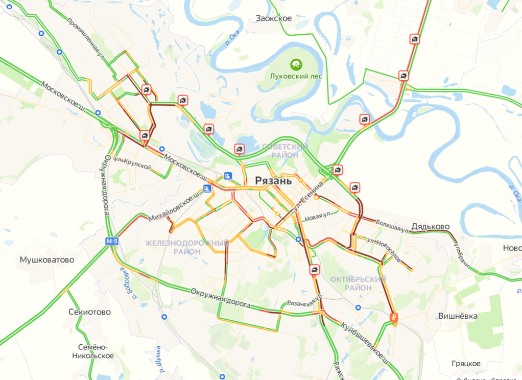 Утром в понедельник, 6 марта, в Рязани образовались 10-балльные пробки. Об этом свидетельствуют данные сервиса «Яндекс. Пробки».