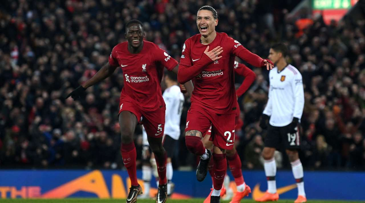 В матче 26-го тура чемпионата Англии по футболу «Ливерпуль» одержал крупную победу над «Манчестер Юнайтед» со счетом 7:0. Встреча прошла на домашнем стадионе «мерсисайдцев» — «Энфилд» в английском Ливерпуле. Первая половина игры прошла без явного преимущества одной из команд, однако под конец тайма на 43-й игровой минуте подопечные Юргена Клоппа сумели открыть счет благодаря точному удару нидерландского нападающего Коди Гакпо. Благодаря голу «в раздевалку», а также благодаря очень «резвому» старту второй половины игры в исполнении футболистов «Ливерпуля», забивших еще два гола в первые пять минут после перерыва исход игры был предопределен. По одному результативному удару себе в актив занесли уругваец Дарвин Нуньес (47-я) и Коди Гакпо (50-я) соответственно. Оставшееся время матча футболисты «Ливерпуля» грамотно ловили соперника на быстрых контратаках, отправив в ворота «Манчестер Юнайтед» еще четыре безответных мяча в исполнении Мохаммеда Салаха (66-я и 83-я), Дарвина Нуньеса (75-я) и