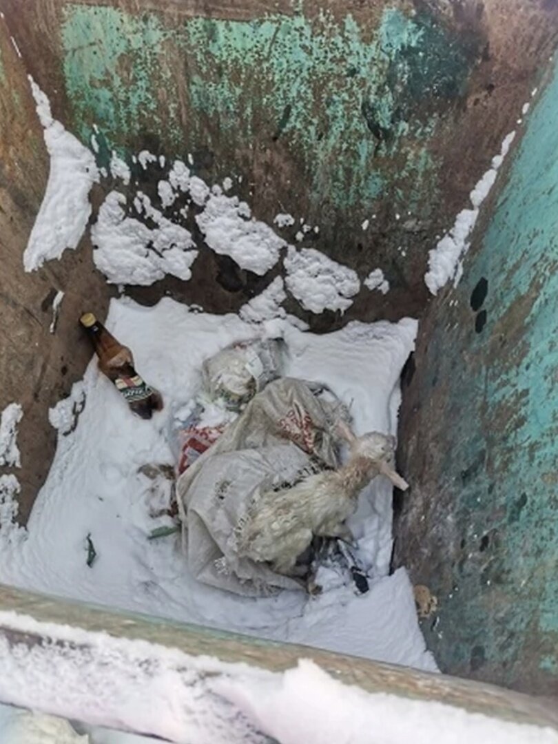 Жительница Нижних Сергов Юлия не смогла пройти мусорного бака, из которого услышала жалобный плач. Сначала она подумала, что это ребенок.