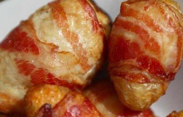 1. Очистить картофель и обернуть каждую картофелинку ломтиком бекона.