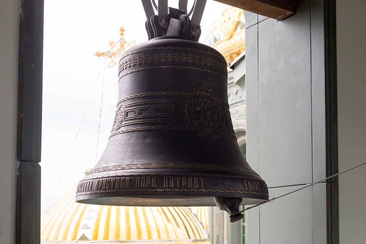 Неотъемлемой частью Главного храма Вооружённых Сил России является колокольня. Ее высота составляет 75 метров. Под куполом колокольни размещены 18 колоколов, общим весом 22,3 тонны. Самый большой из них – Благовестник весит 10 тонн. На колоколах отображена тема Победы в Великой Отечественной войне и иконы покровителей русского воинства. Центральным сюжетом западного фасада колокольни стал стяг (русское воинское знамя) с изображением иконы Спаса Нерукотворного, поддерживаемый двумя архангелами в воинском облачении — архангелом Михаилом с огненным мечом и победно трубящим архангелом Гавриилом с копьём. На северном фасаде колокольни — рельефное изображение архангела Михаила в воинских доспехах и верхом на крылатом коне, раскрывающее его роль, как архистратига, предводителя небесного воинства. Победно трубя, он одной рукой сжимает копьё, пронзившее поверженного им сатану, а другой приподнимает Библию, показывая, какой силой побеждён враг человечества. На противоположном, южном фасаде колок