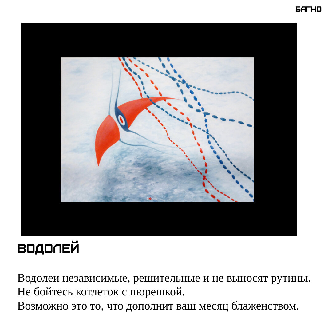 Здравствуйте! Мы – Арт-группа Фантазёры. Раз в неделю по понедельникам здесь будут выходить интересные, полезные и весёлые статьи. «Арт-гороскоп» Астрологи объявили месяц улыбок. Количество счастливых увеличилось в десять раз. Месяц март - он как пятница. Кажется, что вот-вот уже выходные, но работа не отпускает. И чтобы скрасить ожидание прихода настоящей солнечной весны арт-группа «Фантазёры» приглашает окунуться в мир веселых гороскопов. Каждая работа посвящена одному из знаков Зодиака —это небольшое шутливое исследование современного понимания значений предсказаний. Художники : Никита Лыткин, Аксинья Францева, Светлана Богачева, МаринАРТ Меркулова, Екатерина Савенок, Елена Сокольская, БАгно, Женя Жари, Полина Свиридова 7 марта в Центральной городской молодежной библиотеке им. М.А. Светлова открывается выставка «Фантазеры. Арт-гороскоп». Выставка пройдет до 31 марта. Вход свободный. Адрес: ул. Большая Садовая, д. 1