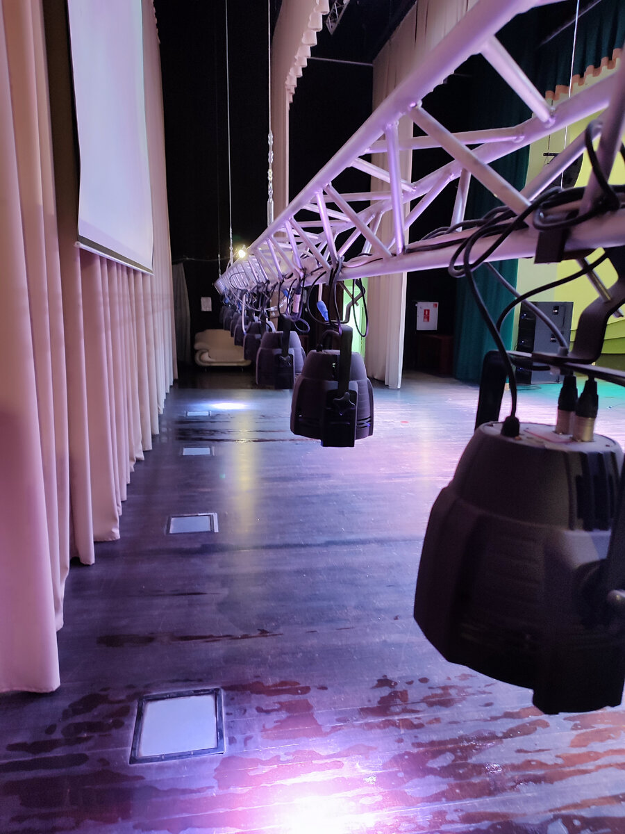 Добрый день товарищи! Сегодня в ДК у нас концерт, посвященный международному женскому дню. А наши па́рики, как мы их называем, не вовремя стали сыпаться. И все бы ничего, можно было так оставить, и дождаться полной темноты, может тогда наше руководство обратит внимание на проблему и закажут хотя бы запчасти.))) Но вроде женский день, все такое... Надо делать. Опускать ферму на которой крепятся прожектора, то ещё удовольствие. Ручной привод... Крутили по очереди.) Из девяти прожекторов на четырех перегорели некоторые светодиоды, а один сбрендил и моргал сам по себе. На кнопки не реагировал. Оказалось у него ещё и кулер не работает. Снимаем не рабочие и в процедурный кабинет. Ещё однин оказался с нерабочим кулером. Очень горячий. получается два снимаем совсем. так как запасных вентиляторов нет. А три на операцию. Обычная процедура, замена светодиодов. Разбирать полностью не надо. Снимаем решетку которая держит линзы. Крепится на трёх винтиках. С помощью мультиметр ищем перегоревшие с