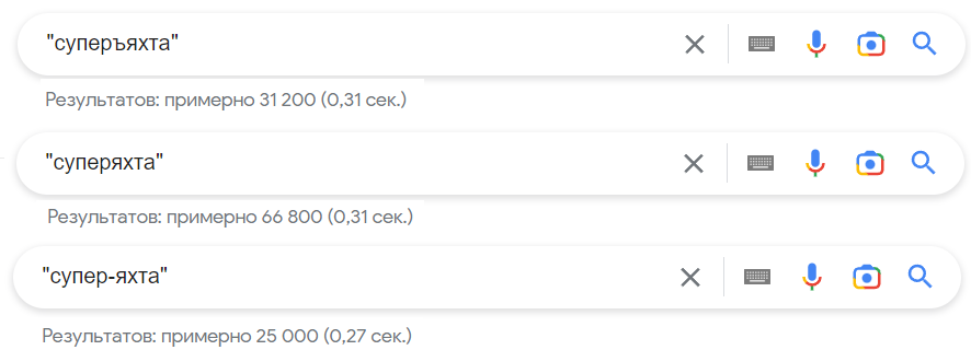 Во-первых, огромный лайк, вот прямо лайкище всем тем, кто дочитал название поста, вы уже крутые. Русский язык, конечно, удивительная вещь. Вот как вы бы объединили приставку "супер" и слово "яхта"? Слитно? Раздельно? Через дефис? Твёрдый знак? Или, может, мягкий? А "сверх" и "интересный" (тут ещё может быть вариант написания через "ы")? А "гипер" и "инфляция"? Чтобы вы не сразу поймали глазами правильный ответ, вставлю сюда небольшое напоминание, что однажды я уже затрагивал тему о том, как правила древнерусского языка (а именно закон открытого слога) аукаются на современном правописании и произношении: А теперь правильный ответ: "суперъяхта", "сверхинтересный" и "гиперинфляция". И если вы подумали про них, то мои вам аплодисменты, именно так выглядят словарные нормы этих слов. Ну, а если ошиблись, то не переживайте - это нормально, и вы такие не одни. И вот только посмотрите, сколько разных вариантов, причём не только у нас в головах, но и в словарях. Почему же в принципе похожие слов