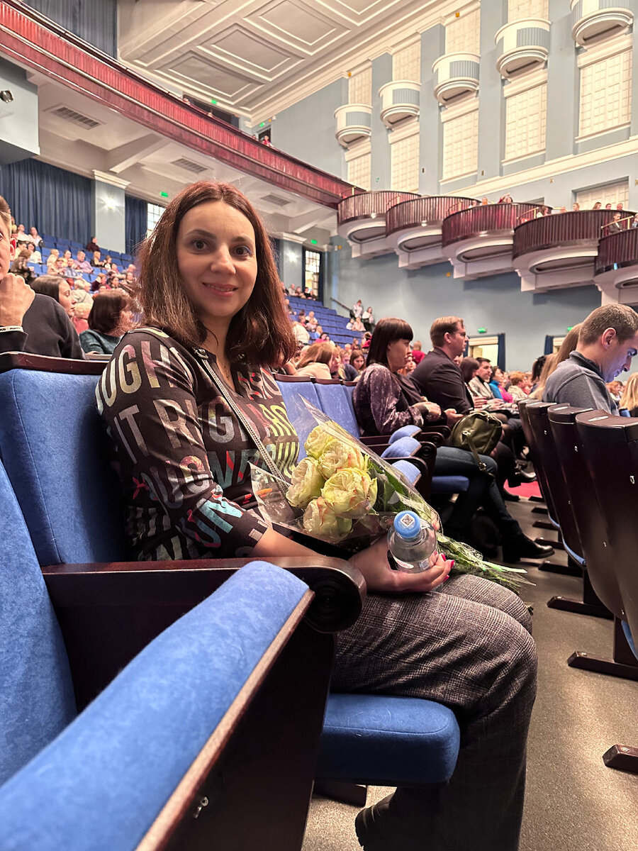 Всем привет, еще в апреле 2020 года, я должна была пойти на этот спектакль, но началась пандемия, и билеты вернули. И вот попытка номер два, и билеты уже в кармане. Дворец искусств Лен. обл. это бывший ДК Горького, мне нравится там зал, слышимость и цены, самый дорогой билет на наш спектакль стоил 2300. Билеты мы купили в партер, на 8 ряд, так как когда проснулись, хорошие места в середине на первых рядах уже были разобраны. Но все равно видно было все прекрасно и слышно тоже. При покупке билетов, хотелось, чтобы играла Михайловская Анна и в этом тоже нам повезло. Спектакль прошел быстро, много смеялись, и потом еще долго обсуждали, классную игру актеров и интересный сюжет. Первый раз на спектакль, я шла с цветами, не знаю почему, но захотелось подарить цветы, мы купили букет роз и я успела с ним сфотографироваться , прежде чем подарить. Первый раз в театре не продавали программки, очень жаль обычно их с удовольствием покупают. Сам сюжет этой комедии, о любовном треугольнике и яркой к