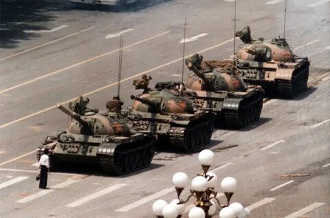 "Неизвестный бунтарь", Джефф Уайденер, 1989 Человек, который в одиночку сдерживал танковую колонну на следующий день после окончания волнений на площади Тяньаньмэнь 5 июня 1989 года. После подавления протестных акций военными утром 5 июня колонна бронетехники, состоящая из нескольких танков, покидала площадь. Мужчина вышел перед ведущим танком колонны и на протяжении нескольких минут не давал ему проехать. Инцидент был зафиксирован на видео и нескольких фотографиях, одна из которых стала всемирно известна.