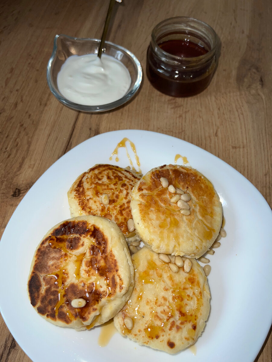 Ингредиенты: Приготовление: Смешать все ингредиенты , хорошо перемешать . Стол присыпаем немного мукой , берем 1,5 ст. л теста и делаем сырники . На сухой , разогретой сковороде обжариваем сырники с каждой стороны по 2-3 минуты на среднем огне .