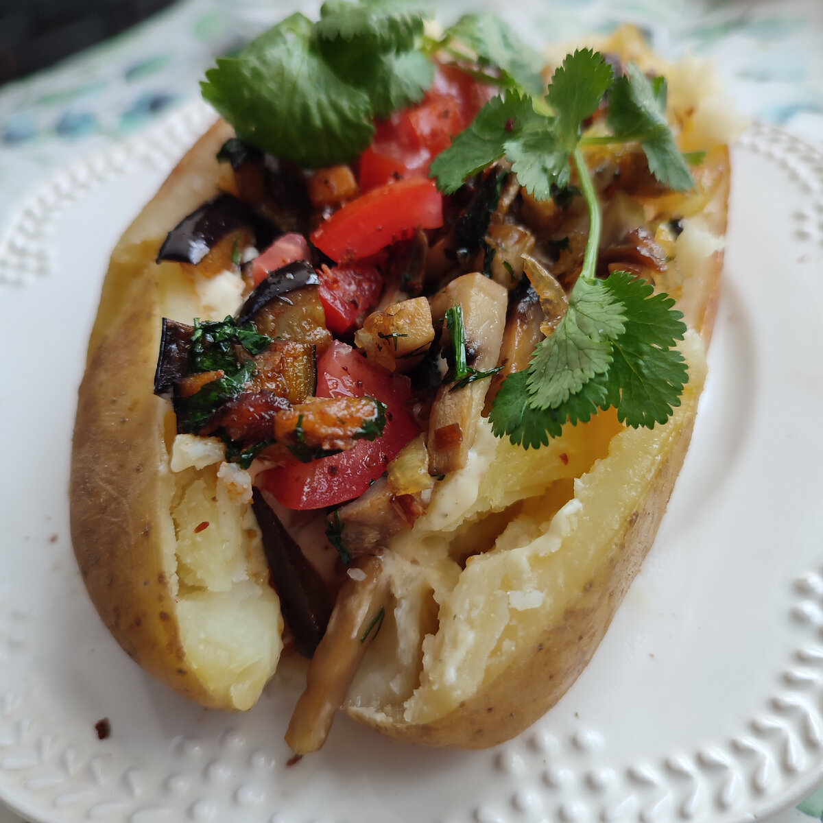Я обожаю картошку и это блюдо теперь будет в моей копилке! Мне кажется, что оно отлично подойдет для какой-нибудь дружеской посиделки, где можно организовать буфет из разных начинок и каждый соберёт себе свой кумпир Вообще-то кумпир это наша крошка-картошка, потому что принцип такой же - запекается картошка, а потом разминается и начиняется всякой вкуснятиной. Просто я не думала о том, чтобы приготовить что-то подобное дома, а когда приготовила, оказалось что это довольно просто. Я приготовила постный или вегетарианский вариант, но расскажу вам и про другие. Ингредиенты: На 4 порции Приготовление: Включите духовку разогреваться до 200 градусов. Картофель нужно хорошо помыть, завернуть в фольгу и отправить в разогретую духовку. У меня запекался полтора часа, мы даже с мужем успели в магазин съездить. Проверить готовность можно деревянной шпажкой, если легко протыкается, значит готов. Пока картофель запекается можно приготовить начинки, вариантов очень много - это могут быть свежие или