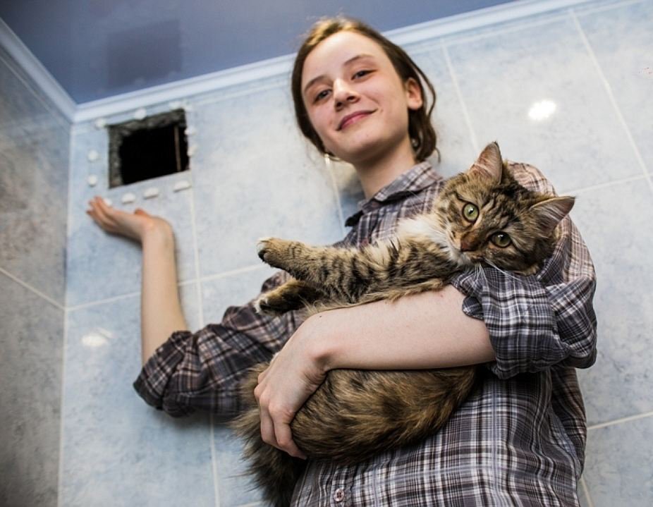 Кошка застряла в вентиляционной шахте многоэтажки и просидела там 10 дней, пока её не спасла школьница