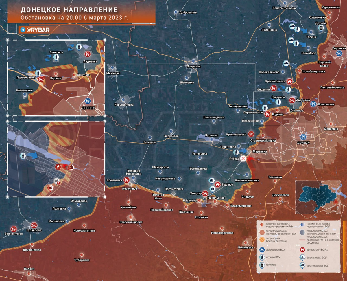 ▪️Подразделения ВС РФ немного продвинулись в районе пруда между Водяным и Первомайским, слегка улучшив тактическое положение. Кроме того, идут бои у холмов к северу от Водяного.