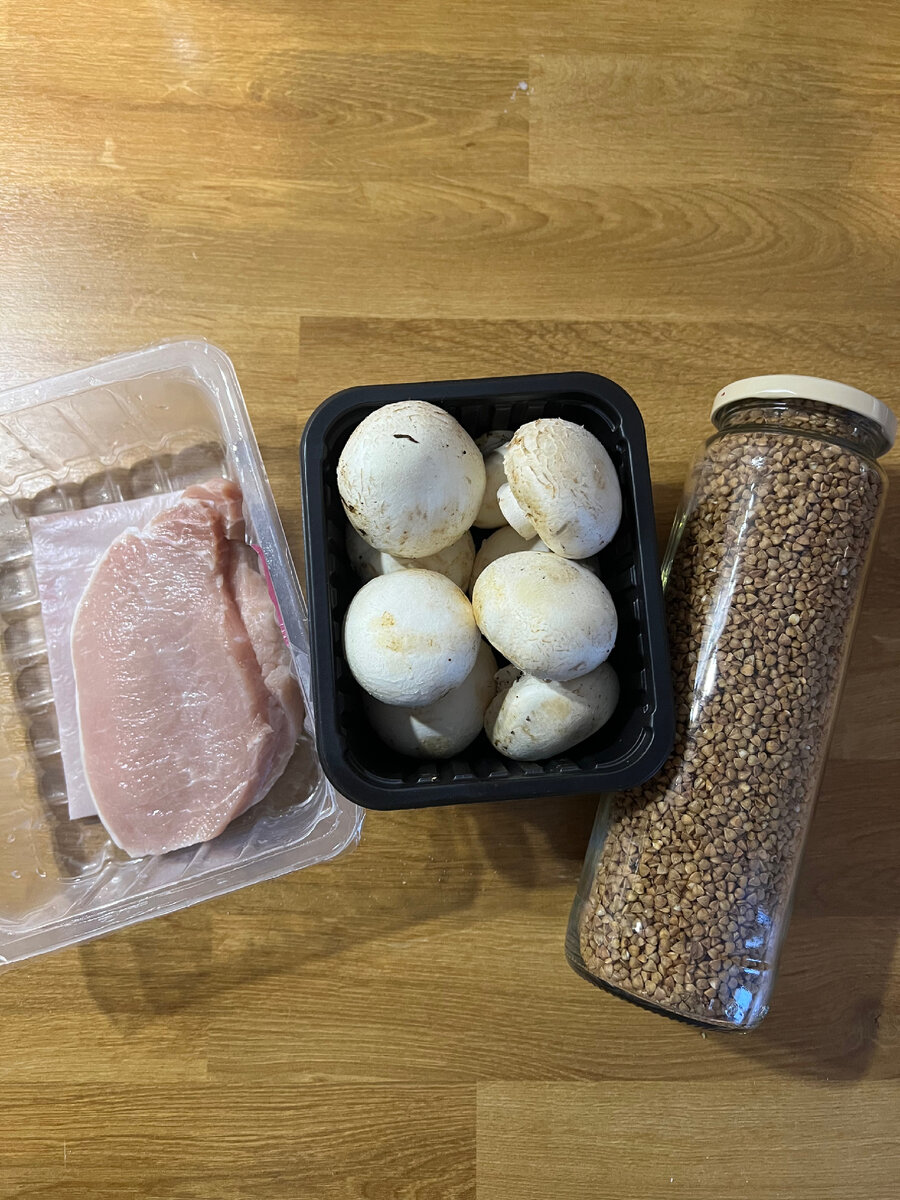 Гречка не самый любимый продукт в моем рационе, но если хочется, то только так. Получается полноценное блюдо, подходящее для всей семьи. Нам понадобится: В первую очередь моем, чистим грибы. Нарезаем ломтиками и обжариваем. Обжариваем грибы до золотистого цвета и добавляем свинину ( мясо можно заменить на говядину либо курицу) Обжариваем мясо до корочки, в этот момент я добавила специи. Решила добавить кубик с томатом и зеленью. Кубик растворяю в стакане воды. В это время в кастрюля добавляем гречку из расчета 1 стакан крупы на 2 стакана воды ( 1 стакан с растворенным кубиком) Накрываем крышкой, ставим на медленный и тушим 15 минут. Чтоб гречка была не такой сухой, не выпариваем всю воду. Так будет вкуснее 😉 Ваш ужин готов, подаем с сезонными овощами! Наслаждайтесь! Приятного аппетита!