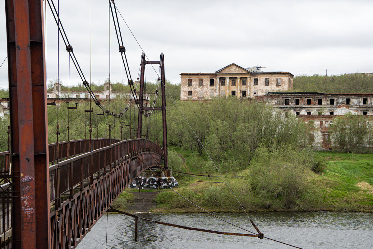 Воркута начиналась как небольшое поселение на берегу реки, уже позже все это переросло в поселок, который был назван Рудник. Первые 43 человека прибыли сюда в 1931 году. Это были политзаключенные, получившие приказ провести разведку залежей угля. И лишь в 43 году была образована Воркута. Поселок Рудник вошел в состав более крупного города и стал его историческим центром. Автомобильная дорога ведет в объезд, а для пешеходов был построен вантовый мост. Сейчас он не в лучшем состоянии, а таблички гласят об аварийности и запрете использования. Хотя жители все еще используют его сокращая дорогу до шахты и обратно. В 80х добыча угля резко сократилась, еще через десять лет начали закрываться шахты. Поселки и районы Воркуты начали пустеть. Рудник стал безлюдным. Сейчас редкие Воркутинцы выбираются сюда в выходные на пикник. Сооружают из кирпичей мангал, и жарят на огне мясо. Такой вот пикник на обочине получается. А когда-то тут кипела полноценная жизнь, была своя школа, детский сад, поли