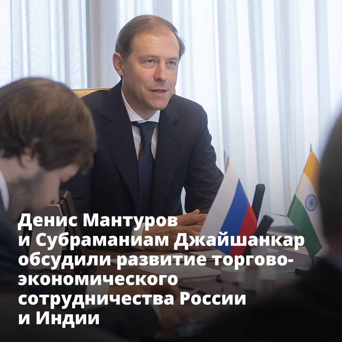 🇷🇺🇮🇳Состоялись онлайн-переговоры вице-премьера – министра промышленности и торговли РФ Дениса Мантурова с министром иностранных дел Индии Субраманиамом Джайшанкаром в формате встречи сопредседателей Межправительственной российско-индийской комиссии по торгово-экономическому, научно-техническому и культурному сотрудничеству. С участием профильных ведомств двух стран были подведены итоги деятельности рабочих групп в следующих областях: ⚙️промышленности, 🔋энергетике, 🌾сельском хозяйстве, 💊фармацевтике, 💳финансах, ✈️гражданской авиации. «Доклады рабочих групп наглядно демонстрируют, насколько обширная повестка дня у российско-индийских отношений», – отметил Денис Мантуров. 🤝Достигнута договоренность о проведении в Индии полноформатного заседания комиссии в апреле текущего года.
