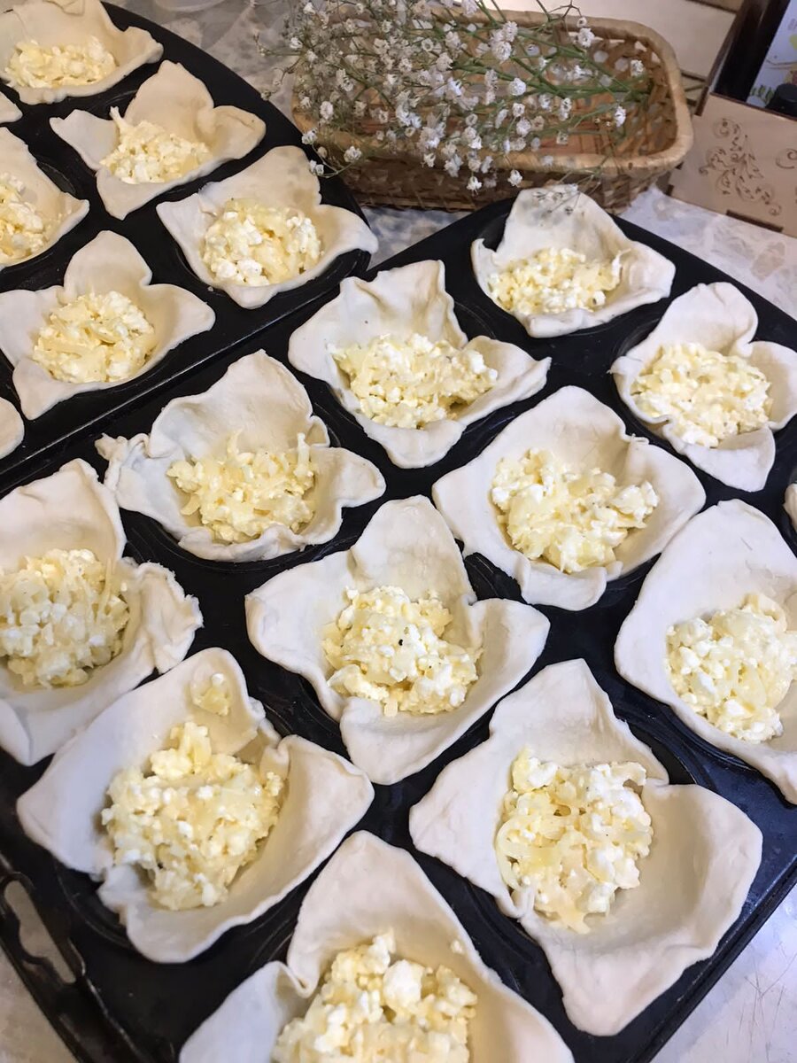 Изначально название этого блюда произошло от французского термина, который подразумевает тонкую нарезку молодых овощей, но в русской кухне это слово потеряло своё первоначальное значение и закрепилось за разновидностью горячих закусок, не имеющих отношения к французской кухне. Для наших жульенчиков нам понадобятся: Для начала один пласт слоеного теста разрезаем примерно на 9 частей, затем каждую часть раскатываем и укладываем в смазанную форму для кексов. Смешиваем сыр, творог и сметану, добавляем немного соли и молотого черного перца. Ложкой выкладываем начинку на тесто. Ставим в духовку на 180 градусов на 20 минут. Приятного вам аппетита!