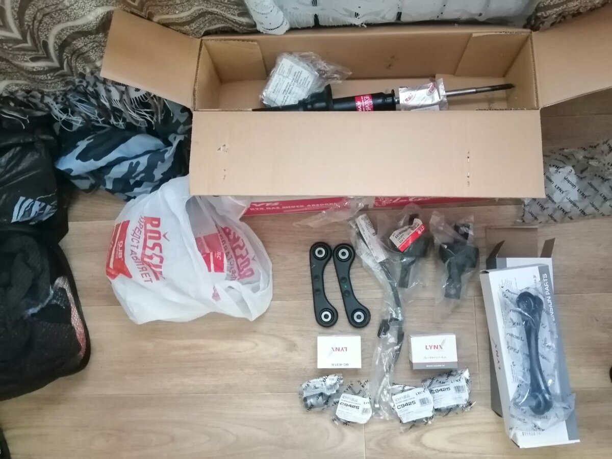 Привет всем. Не так давно был в городе и прикупил запчастей для своего партнёра. Обошлось мне все это добро в 30 тысяч. На фото нет патрубков и наклейки. Машина у меня 2001 года. В то время когда купил прошлый хозяин перетрес подвеску именно заднюю. А я когда купил перетрес перед. Но прошло уже несколько лет да и по нашим дорогам хлопнул обе задние стойки. Так что решил перетресать. С самого утра погода была очень хорошая, но потом резко испортилась, стало холодно. Деваться некуда я уже начал разбирать Снял всю обшивку в багажнике открыл доступ к стойкам Нашли с другом жигулевские стяжки, они немного шире ставить не удобно но возможно, подготовили стойки к установке Преса у меня нет поэтому все делали подручными средствами типа молоток, старые обоймы сайлентблоков (заранее на костре отжег резину чтобы освободить обоймы), домкрат (хотя им вообще не пользовались) основной инструмент молоток. Только будьте аккуратны у меня соскользнул молоток и я бабахнул себе по руке (ничего серьёзно