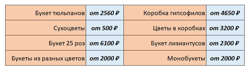 Начало марта — самый горячий сезон для продавцов цветочных магазинов. Мужчины теряются в душистом разнообразии нежного товара. Орхидеи, ирисы, нарциссы, розы, хризантемы и тюльпаны — все это можно найти в любом цветочном магазине города. Вопрос только в сумме. Например, готовый букет - удовольствие не из дешевых. Так, стоимость некоторых композиций может достигать десятков тысяч рублей. Самые скромные, из тюльпанов, можно приобрести от 1 500 и выше. Примерные цены букетов в таблице ниже. Если вы планируете составить букет собственноручно, то для вас средняя стоимость цветов поштучно указана в табличке. При выборе букета флористы рекомендуют обращать внимание на возраст и на то, в каких отношениях вы находитесь. Например, молодым девушкам можно подарить цветы светлых оттенков. Нежно-розовые композиции из хрупкой чайной розы будут эффектным подарком. Можно экспериментировать и с большими бутонами, или даже с каллами. Но оттенки должны быть пастельных тонов. Для родственников на 8 Марта п