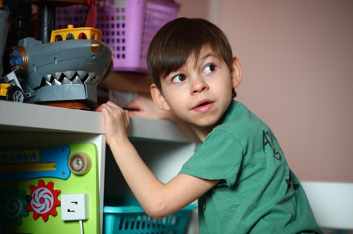 Максиму Волкову из Волгограда летом исполнилось пять лет. Он родился на 41-й неделе, роды были сложные. Месяц малыш провел в отделении патологии, диагноз ДЦП (GMFCS 3) поставили сразу. А когда мальчику исполнилось полгода, начались эпилептические приступы. И с тех пор каждый день Максим принимает лекарства, которые держат эпилепсию под контролем. Живут вдвоем с мамой. С мужем Яна развелась, когда Максу было два года. Взяла ипотеку и переехала из поселка в Волгоград, чтобы быть ближе к врачам и развивающим центрам. Бабушка и дедушка, которые остались в селе, помогают выплачивать ипотеку. Два раза в неделю Максим ходит в детский сад в группу кратковременного пребывания. Он дружелюбный и веселый, любит общаться с ребятами. Яна принесла в садик ходунки, чтобы Макс мог передвигаться. Самостоятельно мальчик только ползает. «Он не умеет разговаривать, в речи только несколько слов. Уронит что-то, скажет „бах“. Может за мной повторять „иди“, когда я его тороплю. Но с детьми все равно идет на ко