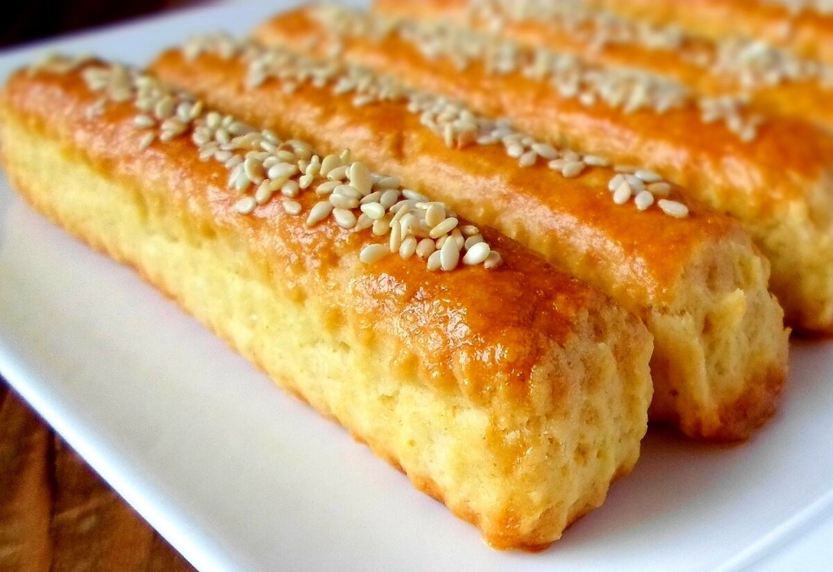 Ингредиенты: 2 яичных желтка 1,5-2 ч. л соли 180гр сметана 250 гр размягченного маргарина (или сливочного масла) 500 гр муки 1 ч. л разрыхлитель 1 яйцо для покрытия семена кунжута для посыпки Приготовить: Достаньте маргарин из холодильника, чтобы он размягчился, почти до комнатной температуры. Смешать муку и разрыхлитель. Поместите два яичных желтка в большую пластиковую миску. Добавляем соль по вкусу и сметану и все хорошо перемешиваем ложкой. Теперь измельчите размягченный маргарин и все хорошо перемешайте ложкой. В конце добавить муку, смешанную с разрыхлителем, и сначала хорошо перемешать ложкой, а затем руками замесить тонкое гладкое тесто. Присыпьте рабочую поверхность мукой, затем раскатайте тесто скалкой до толщины примерно 1 см. Возьмите острый нож или скалку для резки теста. Нарежьте палочки нужного размера и положите их на противень, застеленный пергаментной бумагой. Вам понадобится один большой противень. Вы также можете сделать их в виде булочек, кренделей или любой др