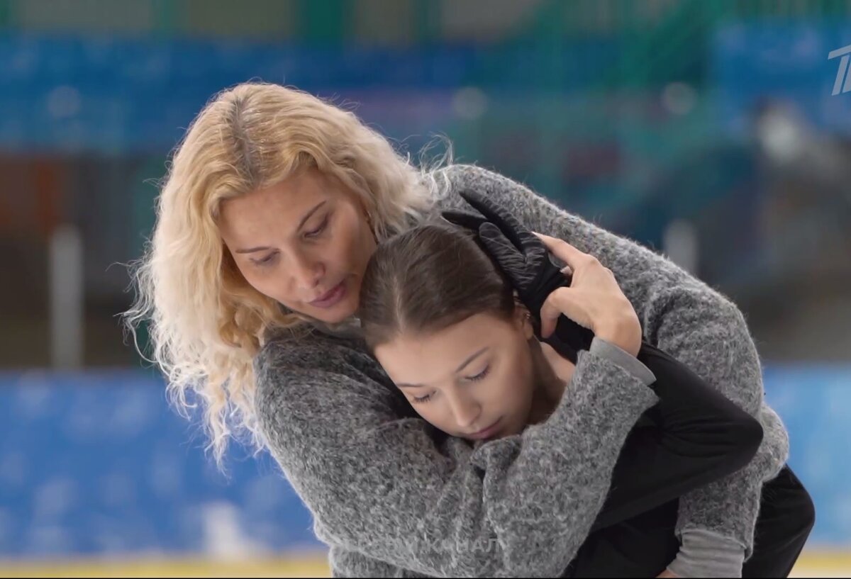 Грядущий турнир шоу-программ потихоньку обрастает подробностями. До мероприятия с говорящим названием "Русский вызов" остается чуть больше недели, оно намечено на 18 марта. Сейчас "Первый канал", который и будет транслировать турнир, делает обзоры подготовки номеров. Первой стала олимпийская чемпионка Анна Щербакова. Свою шоу-программу фигуристка ставит вместе с тренерами Этери Тутберидзе и Даниилом Глейхенгаузом. Что интересного можно отметить из выложенного ролика продолжительностью меньше одной минуты. Каждое движение ставится вплоть до наклона головы и положения рук, плюс отрабатываются эмоции, которые должны транслироваться во время проката. На этом фото, думаю, запечатлена либо стартовая, либо финальная поза. Больше склоняюсь к первом варианту. Этери Георгиевна показывает Ане, в каком месте сосредоточена "боль". Фигуристка сосредоточено прислушивается к себе, а затем с пониманием кивает. - Я хочу по-человечески, прямо совсем по-человечески..., - говорит Этери. - Но это же хорео