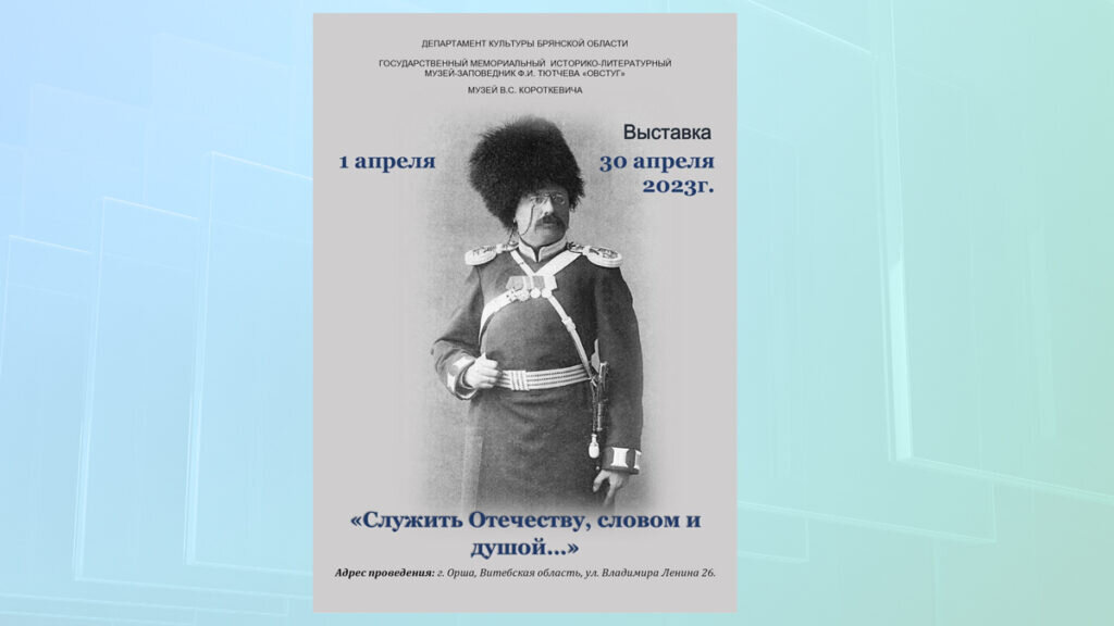 ГАУК «Государственный мемориальный историко-литературный музей-заповедник Ф.И. Тютчева «Овстуг» в День единения народов России и Белоруси открывает выставку «Служить Отечеству, словом и душой…» в Музее В.С. Короткевича (г. Орша, Витебская область). Мероприятие состоится в субботу, 1 апреля. Федор Фёдорович Тютчев (1860-1916) — сын Ф.И. Тютчева и Е.А. Денисьевой. Рано осиротев, Федор Федорович избрал для себя карьеру военного. Он был кадровым офицером русской армии, служил большую часть жизни в Отдельном корпусе пограничной стражи, участвовал в Русско-японской и Первой мировой войнах. Своим современникам Ф.Ф. Тютчев был хорошо известен как талантливый писатель и журналист, у читающей публики рубежа 19-20 веков его рассказы и повести из быта русской армии пользовались должным признанием и популярностью. Долгие годы Ф.Ф. Тютчев сотрудничал со столичными газетами и журналами, в которых публиковались его прозаические произведения и фронтовая корреспонденция. Выставочный проект познакомит по