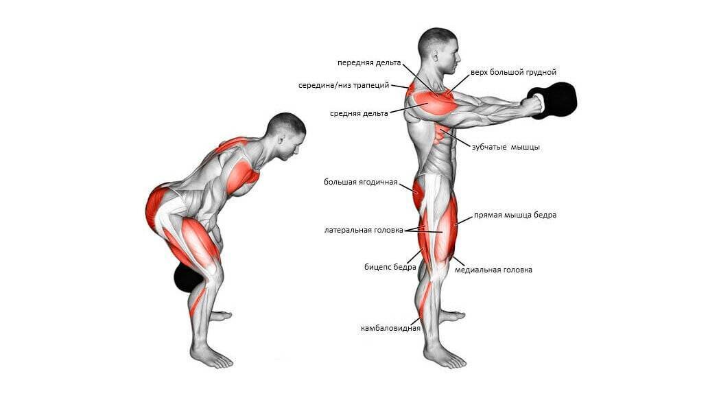 Гиревой трастер -это комбинированное упражнение, в котором задействовано более 600 мышц тела. Приседание с гирями - это уже огромное многосуставное упражнение, требующее активизации мышц ног, бедер, позвоночника и спины. Как только вы добавляете к движению жим гири, вы получаете дополнительную мышечную активацию от плеч, рук, верхней части спины и даже груди. Таким образом, преимущества упражнений заключаются в следующем: 1.3адействует более 600 мышц в одном движении. 2.Отличное кардио упражнение без движения ног. 3.Сжигайте много калорий за короткий промежуток времени. 4.Идеально подходит для развития взрывных движений.