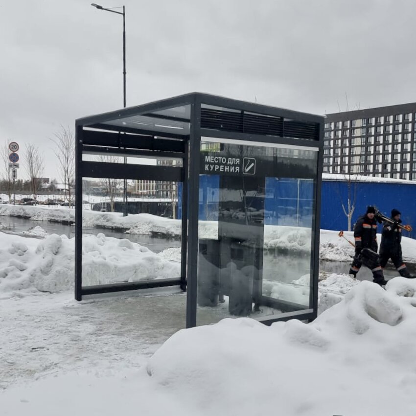 Не так давно мы делились новостями о комплексном благоустройстве, которое наша компания реализовала на территории офисного парка Comcity. В этом году работа над проектом продолжилась, уже на площадке сити-отеля Azimut, расположенного в Comcity. Здесь мы установили павильон для курения, который позволит изолировать специализированную зону от остальной территории, остановив распространение табачного дыма за ее пределы. Дополнительный плюс – павильоны исключают случаи стихийного курения на других участках объекта, и помогают избежать появления мусора в виде табачных окурков. Для этого, павильон дополнительно оснащен пепельницами и скамьей. Реализованный объект Павильон для курения, модель 21.1