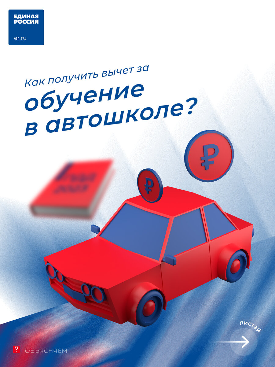 😯Вы знали, что получить вычет за обучение в автошколе можно не только за себя, но и за ребенка, брата и сестру? ❓Какие условия при этом должны соблюдаться и куда подавать документы – рассказываем в карточках. #ЕдинаяРоссия #Полезно