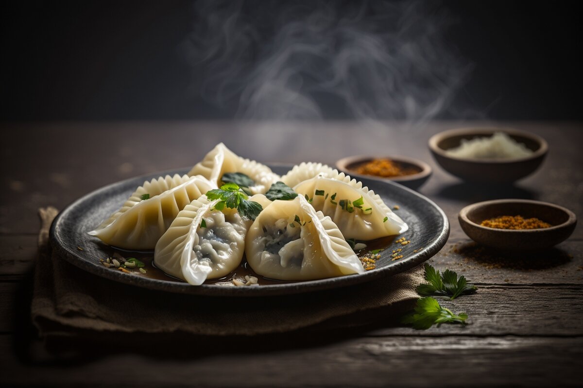 Чтобы собрать пельмени, раскатайте тесто на посыпанной мукой поверхности. Используйте формочку для печенья или небольшой стакан, чтобы вырез