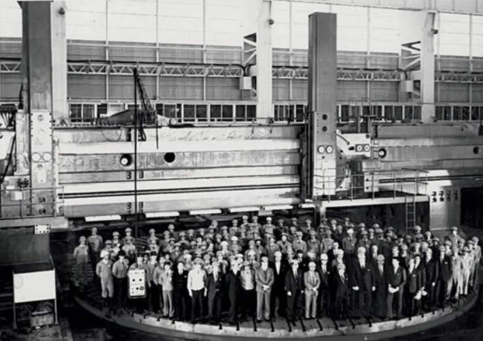 Этот поистине огромных размеров станок имел планшайбу, на которой могла размещаться заготовка диаметром до 20 м при суммарном весе под 560 т.