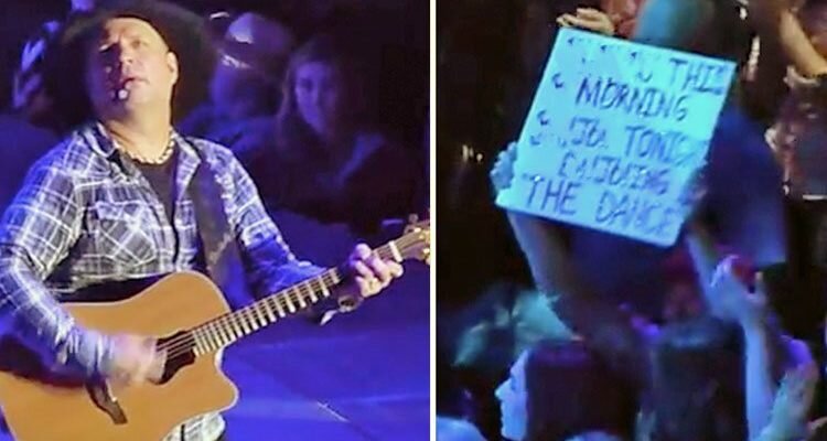 Гарт Брукс видит женщину, держащую табличку, и после прочтения уходит прямо со сцены