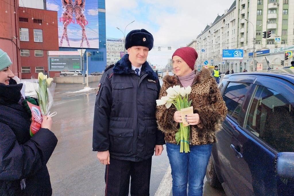 В Новосибирске сотрудники ГИБДД подарили цветы водительницам на 8 Марта