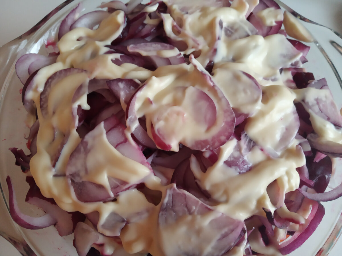 Возможно, кто-то еще не решил, что можно приготовить завтра. Предлагаю беспроигрышный рецепт салата к праздничному столу и на каждый день. Для него понадобятся самые простые продукты: картофель, свекла, морковь примерно в одинаковых количествах, лук и чеснок, майонез. Первые три ингредиента отвариваем до готовности и очищаем. Далее все по классике: нарезаем кубиками сначала картофель, сразу же высыпая его в салатник. Желательно стеклянный. Слой посыпаем слегка мелко нарезанным чесноком и смазываем майонезом. Также поступаем с морковью и свеклой. Нарезали, посыпали чесноком, смазали майонезом. Лук - последний слой. Желательно взять сладкий крымский. Если его нет, подойдет и обычный. Нарезаем тонкими дольками, высыпаем, смазываем майонезом. Вот все и готово. Быстро, просто, вкусно. Если останется на следующий день, то станет еще более насыщенным. Приятного аппетита! Если хотите поддержать автора, подпишитесь на этот канал и делитесь ссылками на публикации