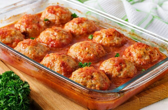Рецепт приготовления: Фрикадельки в томатном соусе Фрикадельки – довольно популярное мясное блюдо, которое готовится из фарша. Его можно подавать вместе со спагетти или с любым гарниром. Такие мясные фрикадельки в томатном соусе будут очень сытным и вкусным блюдом, которое вы легко сможете приготовить в домашних условиях. Фрикадельки в томатном соусе: ингредиенты Для приготовления фрикаделек вам понадобятся: Чтобы приготовить томатный соус, необходимы следующие ингредиенты: Фрикадельки в томатном соусе: этапы приготовления На средний огонь поставьте сковороду. Разогрейте оливковое масло, добавьте измельченный лук и 2 ч. л. чесночного порошка. Прожарьте, пока лук не станет золотистым. Добавьте томатную пасту и готовьте 1 мин. Вмешайте измельченные помидоры, соль и перец. Тушите в течение 30 мин., периодически помешивая. Разогрейте духовку до 180°С. В большой миске смешайте фарш, яйца, чеснок, панировочные сухари, пармезан, нарезанный лук, соль, перец, итальянские травы. Все хорошо пере