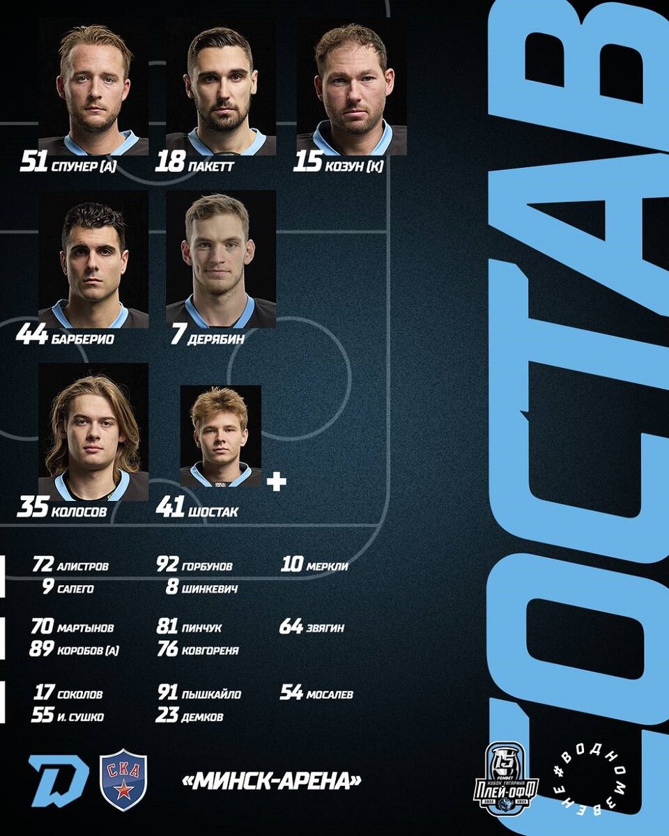 Кубок Гагарина. "Динамо" Минск — СКА. Колосов в воротах "зубров", Дерябин — в первой паре защитников