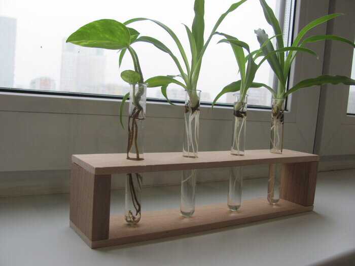 Как я написал в предыдущем посте, у меня появился материал для поделок в виде буковых ламелей. Безусловно это не деловая древесина, однако разбрасываться даже таким материалом я не стану. Он бесплатный и за ним не надо никуда ехать. А на халяву, как известно, и хлорка - творог. Я пообещал найти применение этому добру и поделиться с вами идеями, чертежами и инструкциями. Все праздники и выходные я придумывал и делал эти поделки, попутно снимая процесс. Поэтапно буду выкладываю все на ваш суд. Начнем с самого простого. Подставка для цветов с пробирками. Нам потребуется одна планка и один-два брусочка - стойки от этого же ящика (у нас их четыре). Морилка (или марганцовка) Масло по дереву (или льняное) Пробирки (но можно и без них) Сомневаюсь, что у кого-то на балконе есть рейсмус и фуганок, по этому все делаем чем Бог послал — планку отшлифуем наждачкой. Если есть шлифмашина - супер, ну а если нет, то придется ручками. Рубанком, пилой, циркуляркой или на худой конец опять таки наждачкой,
