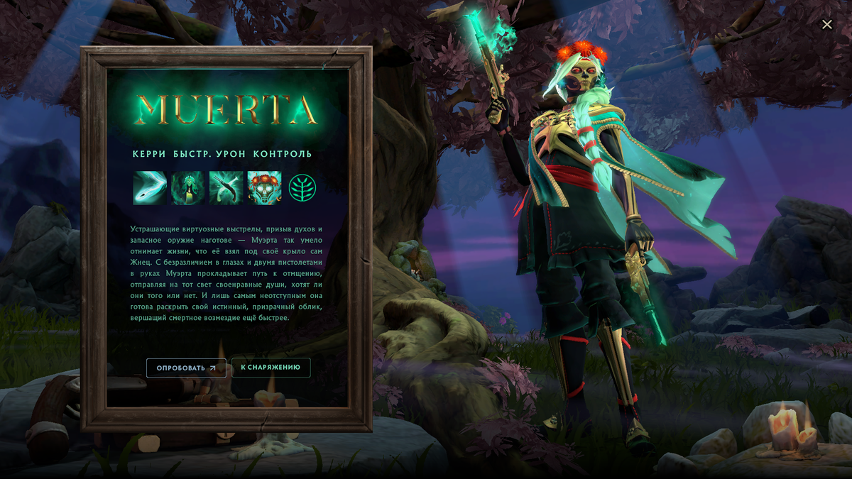 Закончился мажор в Лиме и VALVE выпустили небольшое обновление в доту. В этом мини эссе постараемся рассмотреть нового героя, вернее героиню Муэрту. Судя по её истории, месть - это блюдо, которое подают холодным и мстить мы будем много и часто. Сама смерть вознаградила Муэрту призрачными пистолетами, а два пистолета это лучше, чем один. По характеру Муэрта герой керри с интеллектом. Это значит что будет очень много магии. Если Муэрта зайдет в мету ударом ноги в дверь, обойтись без бкб будет просто невозможно. Внешность Касательно внешности, выглядит Муэрта довольно средненько. Цветовая палитра уж больно напоминает Death Prophet...