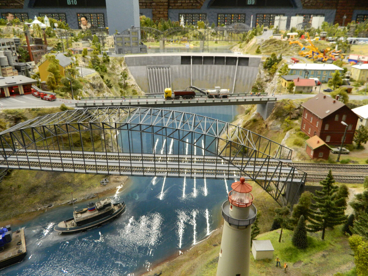Да и площадь в 800 кв.м., которую занимает макет просто впечатляет. Мы ходили там 4 часа и совершенно не устали! Наступление ночи (в макете) наступает каждые 15 минут . 250 миниатюрных поездов бегают по 2,5 км железных дорог.